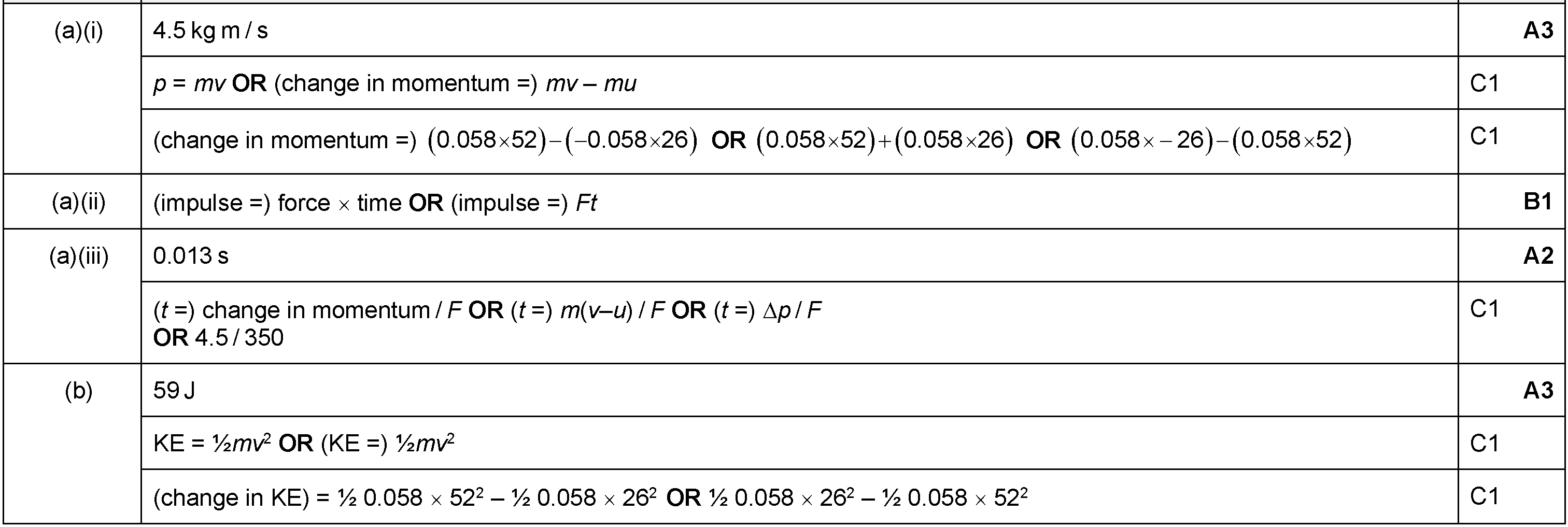 A ball of mass 0.16 kg is moving forwards at a speed of 0.50 m/s. A second ball of mass 0.10 kg is stationary. The first ball strikes the second ball....